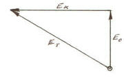 If the electron now begins to move at relativistic speed (very high speed), the inflow pattern changes measurably due to nether pressure in front increasing and the fact that less can come into the vortex from the "sides". We may represent this with another vector attached by its tail end to the top of the vector we have called E0. This new addition is the vector we will label EK for "kinetic energy" and we draw it horizontally to the left. This vector causes the ET to rotate counterclockwise because motion creates kinetic energy which adds vectorially to the rest energy of the electron. The kinetic energy is added at ninety degrees because the rest motion of the incoming nether was largely from the sides and this shifts the average incoming nether motion so that it comes in more from the "front" or leading portion of the moving electron.